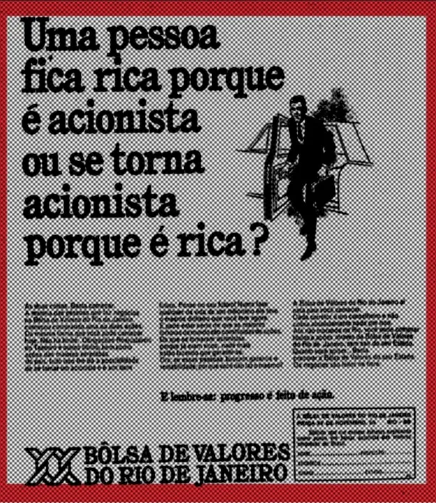 O tema não se atinha ao setor de economia e se expandia para colunas sociais – com comentários sobre a atividade de algum “colunável” na Bolsa – e até mesmo para o horóscopo. A seção de astrologia do jornal Correio da Manhã, datada de 1 de janeiro de 1970, previa para o signo de Escorpião que o ano seria próspero e que a sorte lhe sorriria “em rifas, bolsa de valores e loteria”. Já um anúncio da Bolsa de Valores do Rio de Janeiro no mesmo jornal, lembrava que “progresso é feito de ação” e propunha a questão: “uma pessoa fica rica porque é acionista ou se torna acionista porque é rica?”.