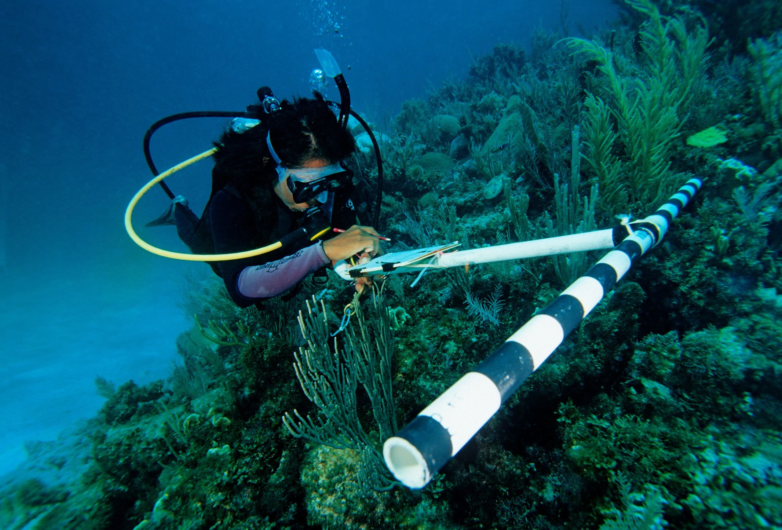 Pesquisadora mergulha no Parque Nacional do Recife de Puerto Morelos, parte do Sistema Recifal Mesoamericano
