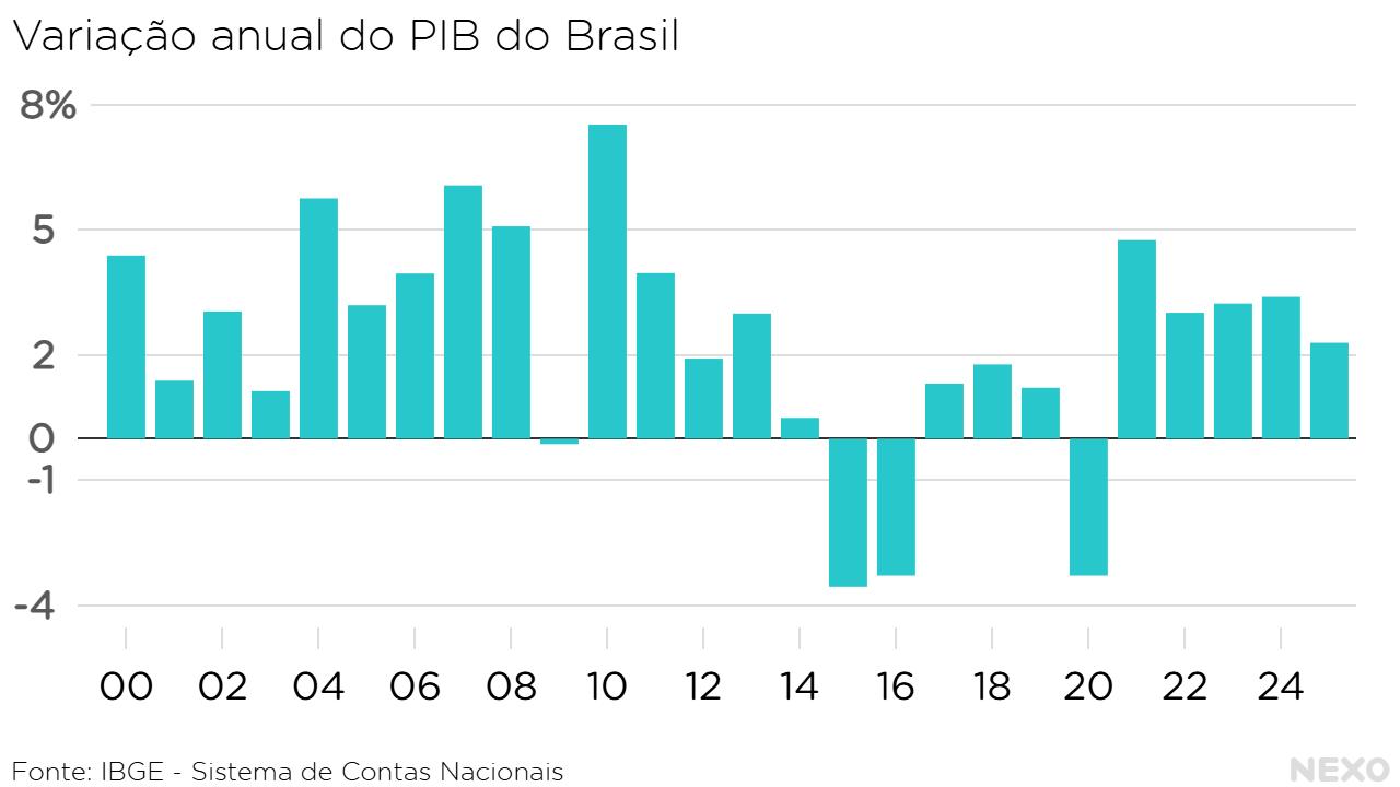 Neste texto, o Nexo explica o que é o PIB, apresenta os principais dados da economia brasileira em 2025 e conversa com especialistas sobre os resultados do ano e as projeções para 2026.