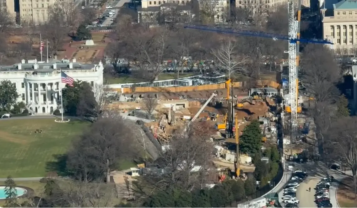 Imagem aérea da obra na Ala Leste da Casa Branca
